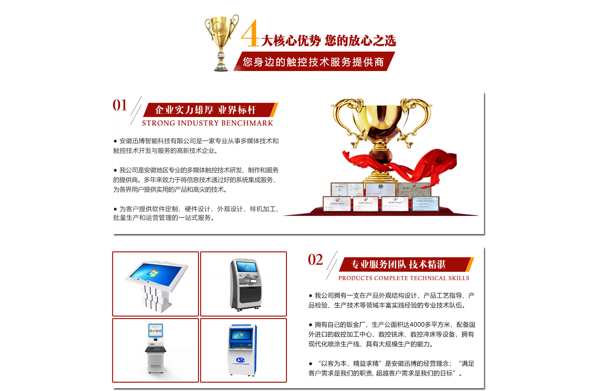 迅博科技 位于中國科教城---合肥市,地處合肥市肥西縣湯口路與皋城路交口西北角人民萬福產(chǎn)業(yè)園一期12棟,是一家計(jì)算機(jī)信息領(lǐng)域的高新技術(shù)企業(yè)公司,全心全意服務(wù)于信息化建設(shè),做信息化提供商,全力打造信息時(shí)代新模式。引進(jìn)了現(xiàn)代企業(yè)管理模式和完善的競爭、激勵(lì)機(jī)智,既具備國有企業(yè)的信譽(yù),又兼?zhèn)渑ζ床⒁恢孪蛏系木瘛Q覆┛萍?擁有多項(xiàng)軟件著作權(quán)證書和多項(xiàng)硬件技術(shù)證書同時(shí)也是一家高新技術(shù)企業(yè),注冊資本達(dá)500萬,辦公面積近1500平米,同時(shí)有合資在杭州成立自己的4000多平米的鈑金廠,公司擁有一支實(shí)力、富有經(jīng)驗(yàn)的計(jì)算機(jī)和信息技術(shù)隊(duì)伍和市場營銷隊(duì)伍,技術(shù)人員都有很強(qiáng)的背景和豐富的實(shí)踐經(jīng)驗(yàn)。一貫注重與...